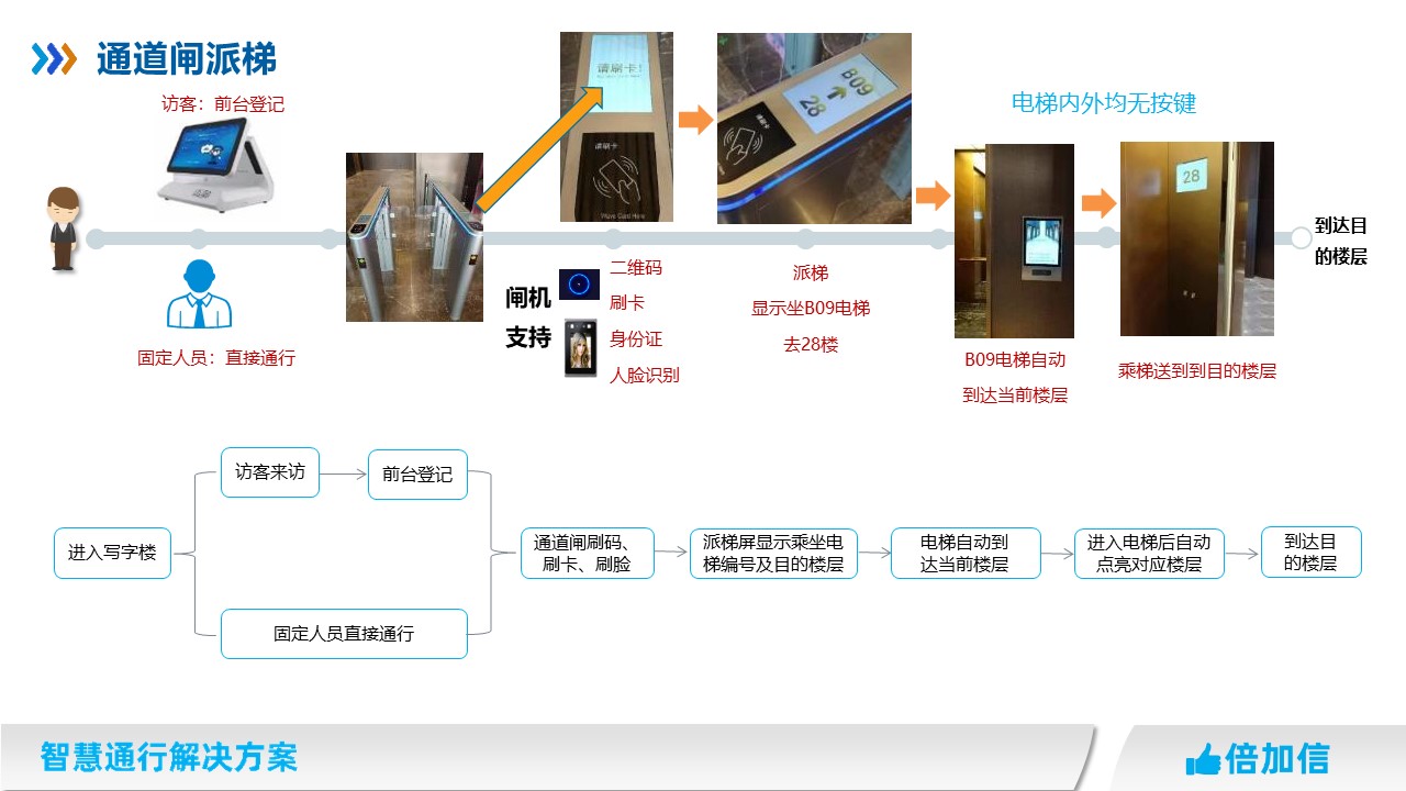 1、支持固定人員刷卡、刷碼、刷臉派梯;